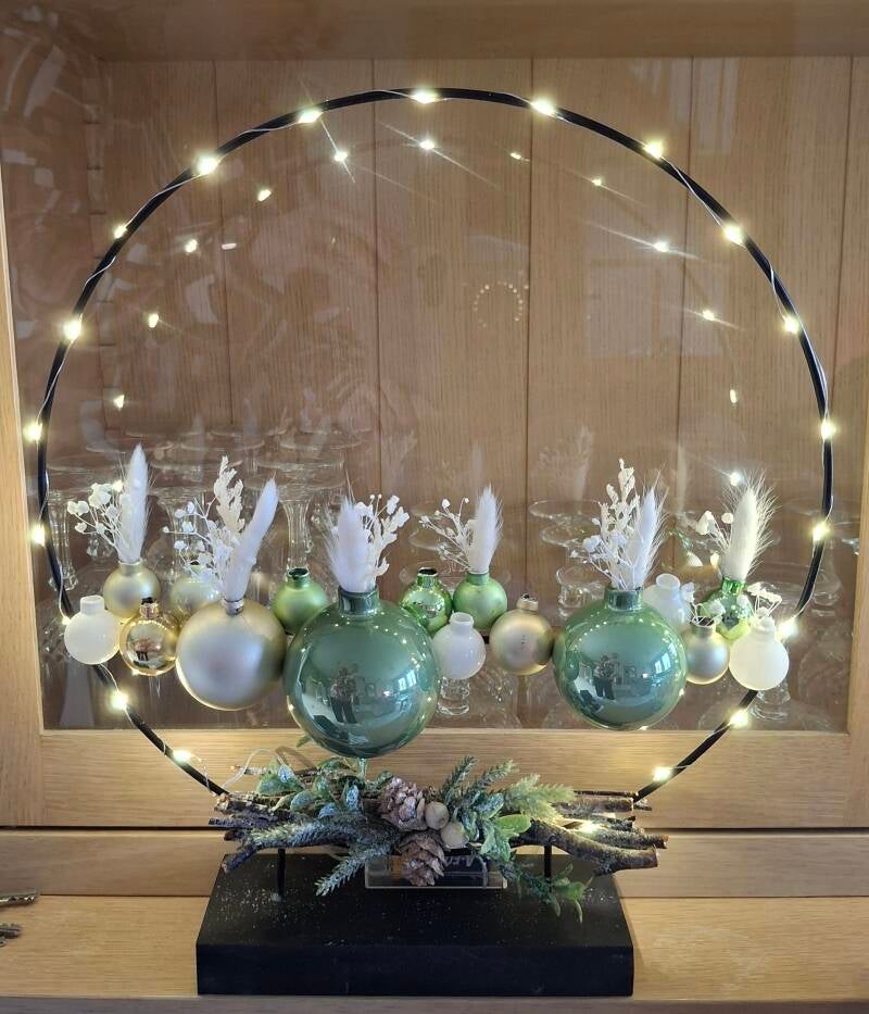 Nieuw! Kerstringen met verlichting, kerstballen en decoratie. 22€