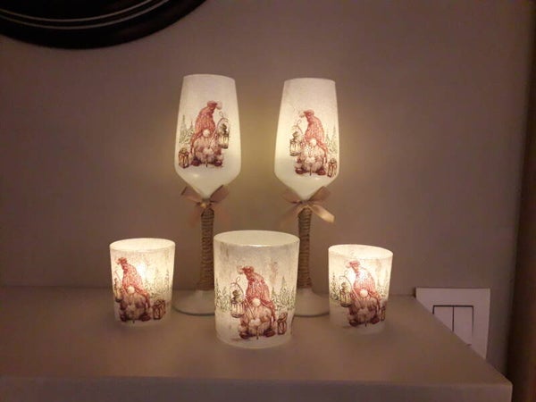 Set genoom theelichthouders (2 wijnglazen, kleine theelichthouder) - € 13,00