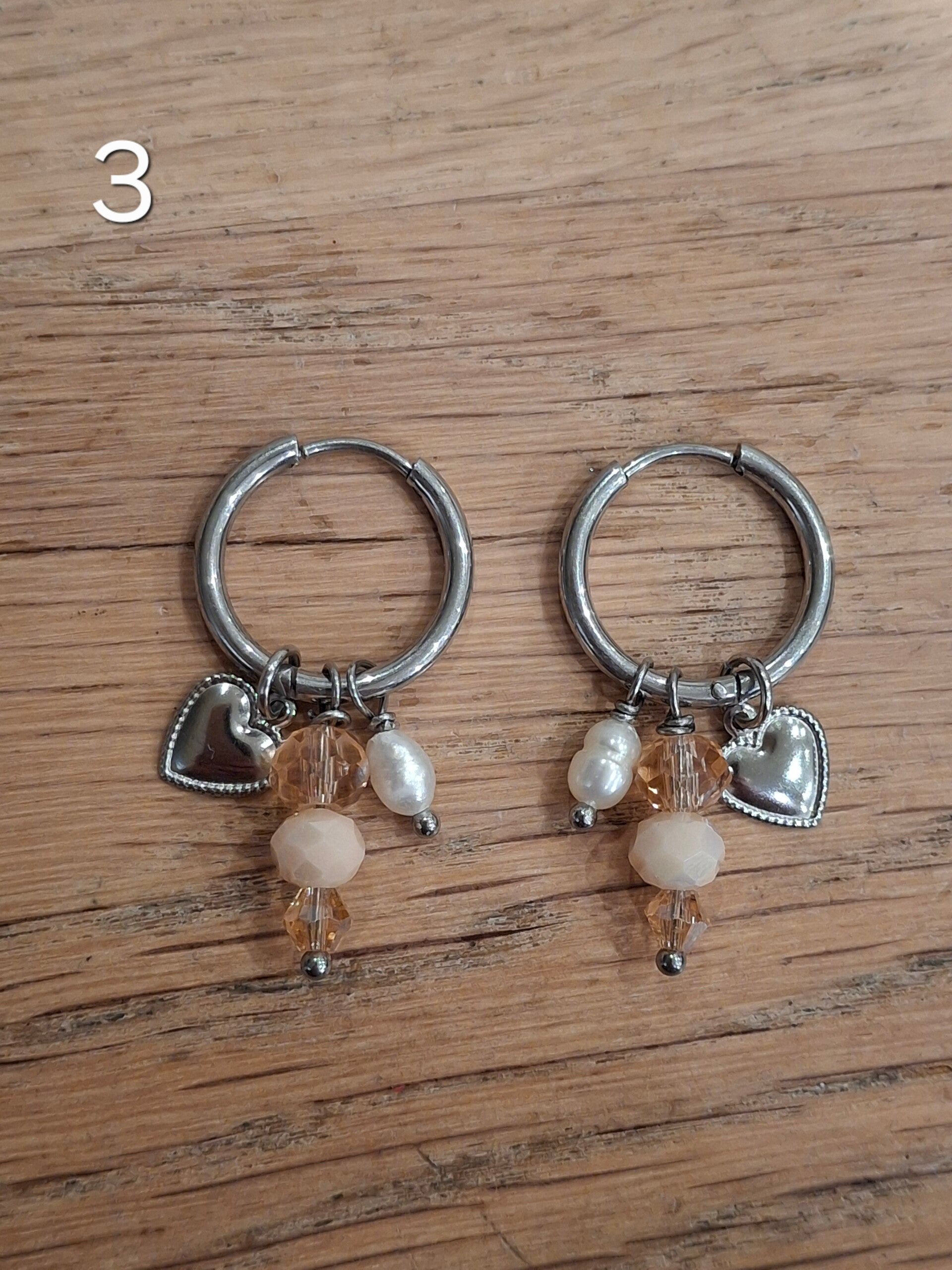 Elk paar oorbellen heeft een nummer. Je kan je paar naar keuze kiezen door het juiste nummer in het winkelmandje toe te voegen.