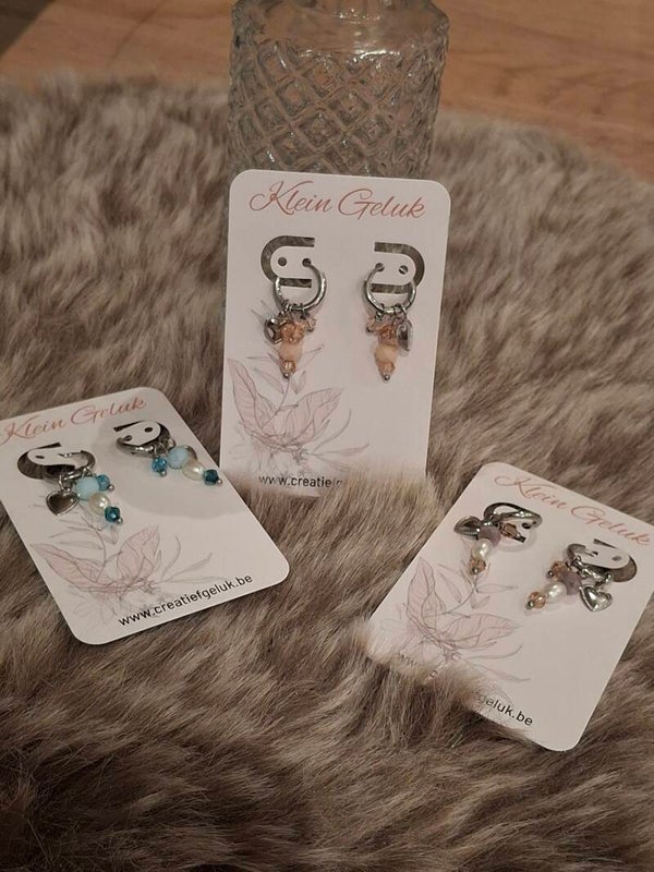 - 3 kralen (2 glaskralen en 1 imitatie parel)
