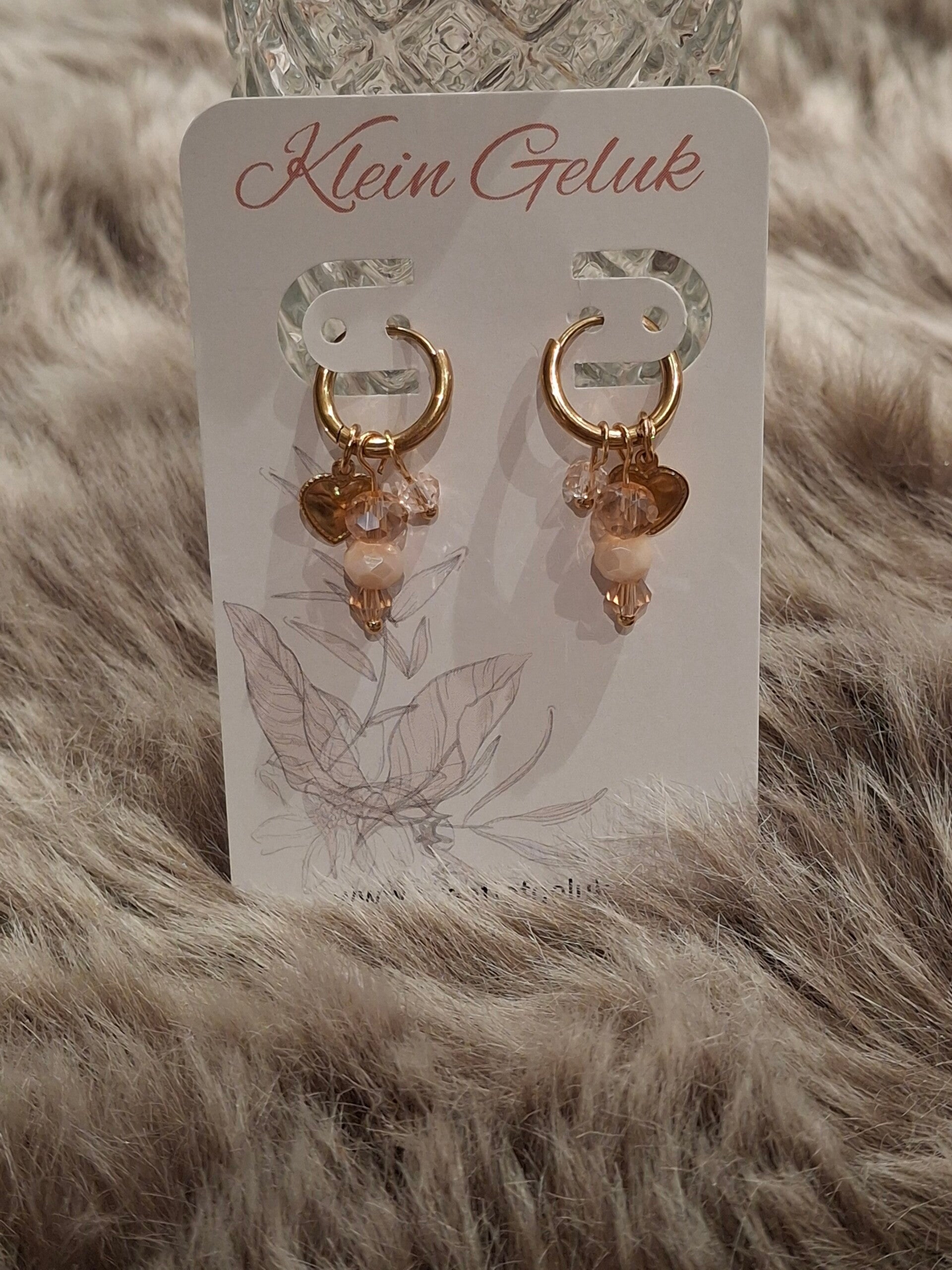 Stainless steel vergulde oorbellen met 3 bedels, roos
