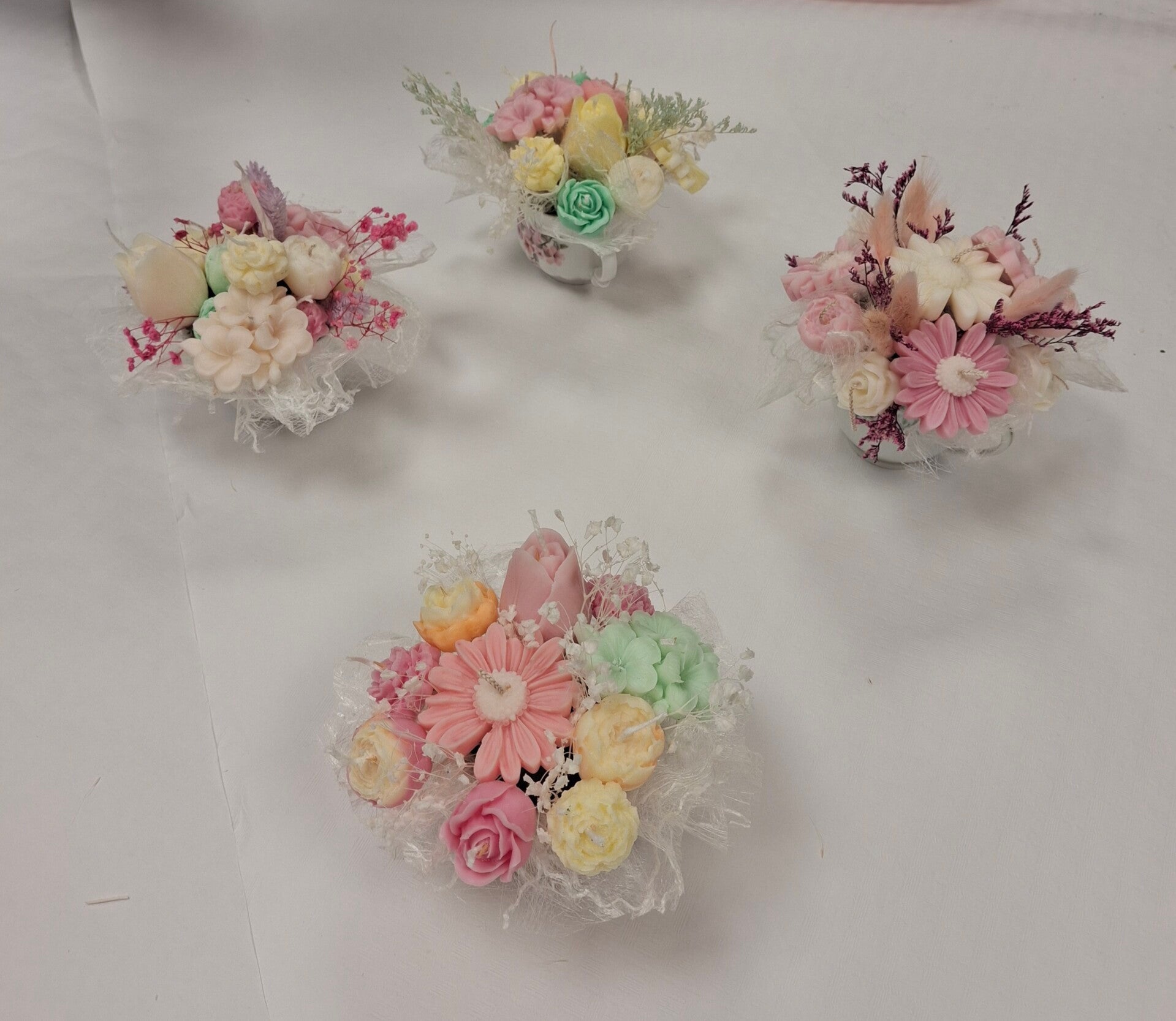 Bloemenboeket van kaarsen in een kopje